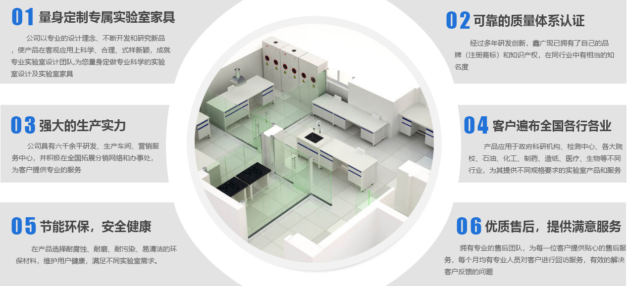 山東鑫廣實驗設(shè)備科技有限公司成立于2007年,是一家位于山東濰坊的實驗室家具工廠。作為實驗室整體解決方案服務商,我們提供從實驗室規(guī)劃、實驗室設(shè)計、實驗室裝修、實驗室工程、實驗室家具、實驗室設(shè)備、到實驗室服務等實驗室建造一站式服務,致力于專業(yè)研發(fā)、設(shè)計、生產(chǎn)實驗室家具等產(chǎn)品及相關(guān)配套設(shè)備,并提供實驗室建設(shè)全套解決方案的新型高科技企業(yè)。公司下設(shè)研發(fā)加工工廠、營銷服務中心,并積極在全國拓展分銷網(wǎng)絡(luò)和辦事處,為客戶提供更專業(yè)、優(yōu)良的產(chǎn)品和服務。